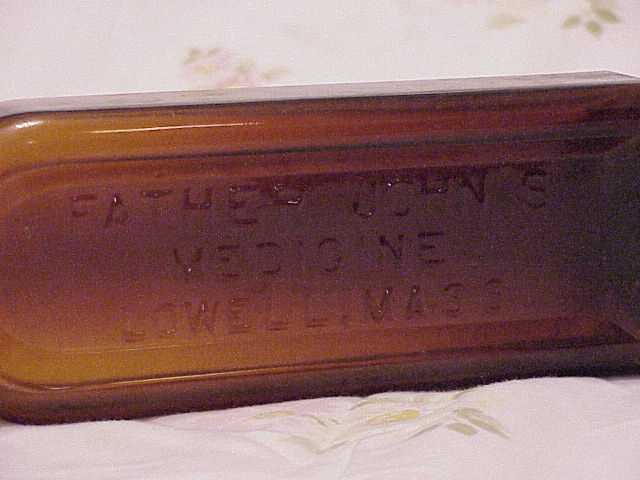 Father John's Medicin bottle in amber glass with no defects. Bottle needs a deep cleaning. Nice !