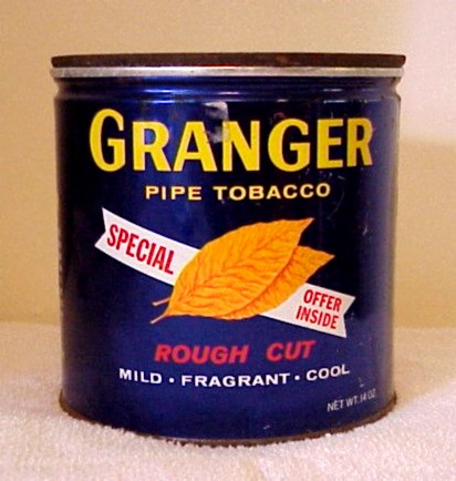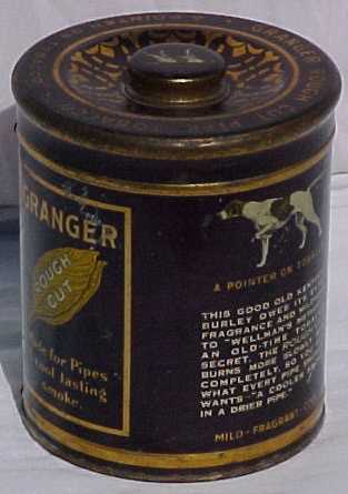 Granger Rough Cut Pipe Tobacco (gold trim, hunting dog, flat top version) |